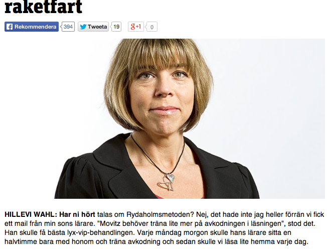 Efter min krönika i Metro om dyslexi och läs- och skrivsvårigheter så har jag fullkomligt överväldigats av responsen. Från norr till söder har föräldrar, lärare, rektorer, forskare och överläkare tackat och bett om mer information om Rydaholmsmetoden, eller ”undret i Markaryd” som Martin Ingvar, läkaren och professor i neurofysiologi vid Karolinska institutet, kallar metoden.